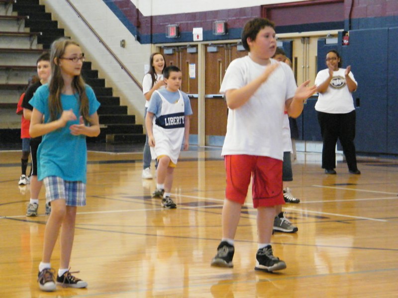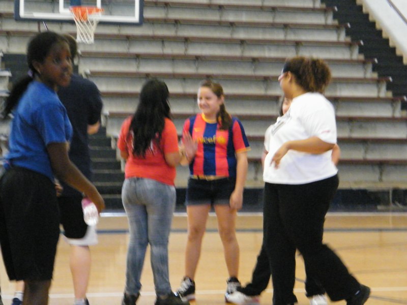 Below are pictures of me participating in a school basketball game and line-dancing. It was a lot of fun!